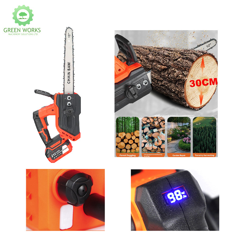 This 12 - inch Brushless High - speed Chain Saw redefines efficiency in cutting tasks. Powered by a 5030 motor, it operates at a high motor speed of 7800 revolutions per minute and has a maximum power of 1580W, enabling it to handle tough cutting jobs with ease. The rated voltage ranges from 21V - 48V, ensuring stable performance. It comes with remarkable features. The battery level indicator allows you to monitor the power status conveniently, so you're never caught off - guard by a low battery. The automatic oil spraying function keeps the chain lubricated during operation, extending its lifespan and maintaining cutting performance. Best of all, it requires no installation. Just take it out of the box and start using it right away, saving you time and effort. Whether for professional woodcutting or DIY home projects, this chain saw is a reliable and user - friendly choice.