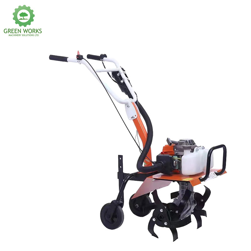 This is our Mini - tiller, model GW07 Four - stroke. It is powered by gasoline, a reliable and commonly accessible fuel source, which ensures smooth operation. With a standard productivity level, this tiller is designed to efficiently handle tilling tasks. It offers a cultivation width of 50cm, making it suitable for a variety of small - to - medium - sized farming and forestry plots. Weighing only 30kg, it is relatively lightweight, facilitating easy transportation and maneuverability across different terrains. This mini - tiller is applicable in multiple fields, predominantly agriculture and forestry. Whether it's preparing soil for planting crops or maintaining forest nurseries, it gets the job done. Moreover, we offer custom - processing options. This means that based on your specific requirements, such as adjustments to tilling depth or additional attachments, we can tailor the tiller to better suit your needs. Its four - stroke engine design also contributes to lower emissions and better fuel economy, making it an environmentally - conscious choice for modern farming and forestry operations.